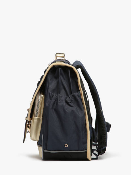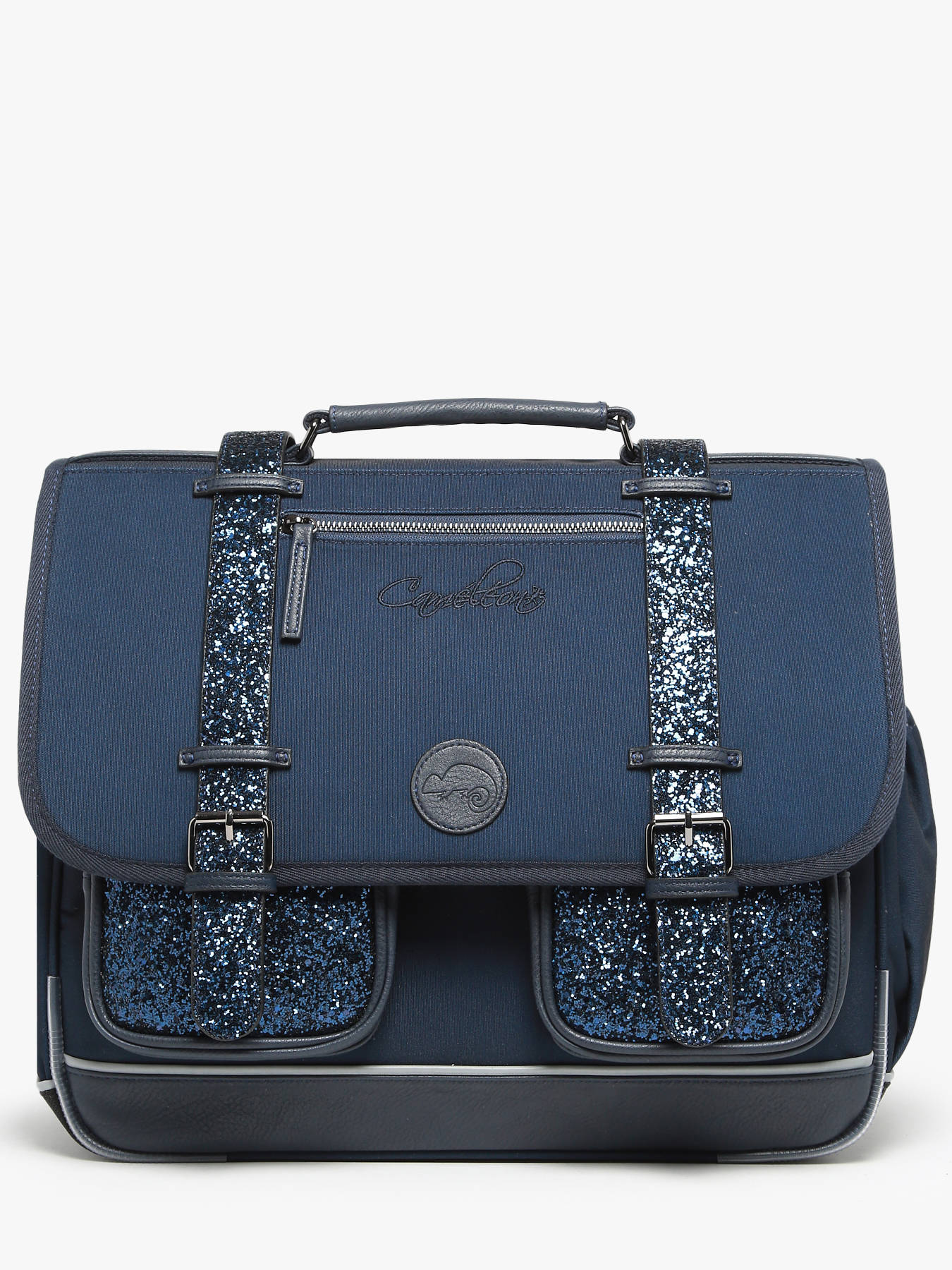 Deze schooltas uit de Vintage Fantasy collectie van het merk Caméléon heeft een breedte van 41 cm. Ideaal vanaf het 4de leerjaar! Dit model heeft een duidelijke vintage look, dankzij twee voorvakjes en de riempjes met gespen. De schooltas beschikt over drie ruime compartimenten, die schriften (24x32 cm), mappen en schoolboeken van A4 formaat kunnen bevatten. Onder de overslagflap bevindt zich ook een uniek opbergvakje, voorzien van een gratis liniaal. De twee kleine ritsvakjes vooraan zijn perfect om een snack of andere kleine spulletjes in te stoppen. Dit model beschikt ook over een naamlabel aan de achterzijde, en kan makkelijk gesloten worden dankzij een dubbel kliksysteem. Voor optimaal comfort zijn de rugzijde en schouderbanden extra gewatteerd. Dankzij enkele reflectoren kan uw kind zich ook veilig in het verkeer begeven. Vintage op z'n mooist!