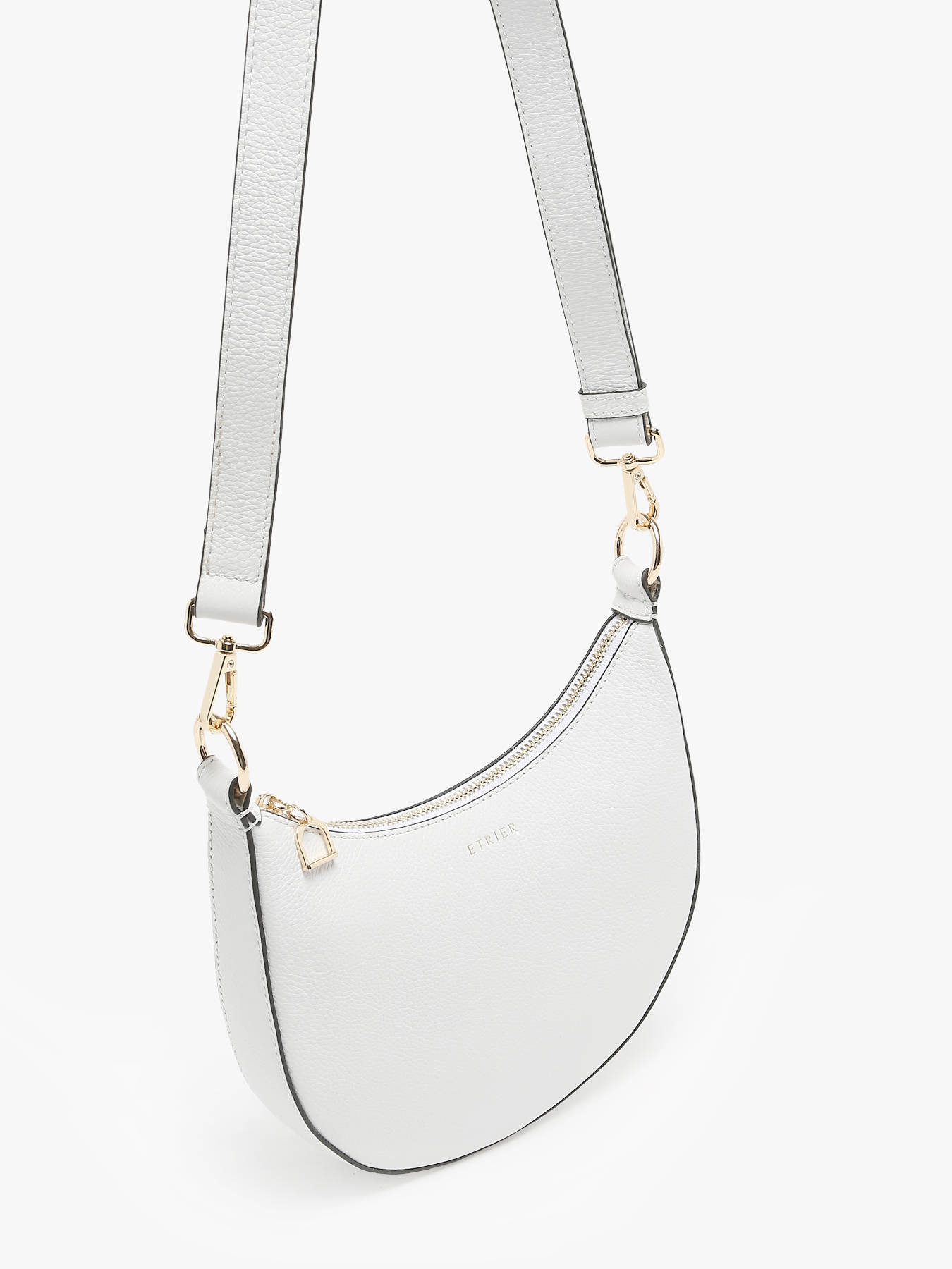 Met zijn halve maan ontwerp belichaamt deze tas van het merk ETRIER de perfecte balans tussen eenvoud en elegantie. Dit praktische kleine formaat is ontworpen om moderne vrouwen te vergezellen op al hun avonturen, terwijl het de iconische codes van de TRADITION lijn weerspiegelt. De gouden sieraden en de stijgbeugel op de rits geven een subtiele toets van verfijning, die het erfgoed en vakmanschap van ETRIER oproept. Binnenin biedt de tas een eenvoudige zak en een ritszak, ideaal om je essentials stijlvol en efficiënt te organiseren. Veelzijdig en comfortabel, het is voorzien van een afneembare en verstelbare schouderriem, waarmee je het schuin over de schouder of op de schouder kunt dragen, afhankelijk van je wensen en behoeften. Compact maar functioneel, deze cross body tas is een onmiskenbaar accessoire voor een verzorgde en minimalistische look. Kies voor de halve maan tas van de TRADITION lijn van ETRIER en benadruk je stijl met een stuk dat moderniteit, tijdloosheid en functionaliteit combineert.