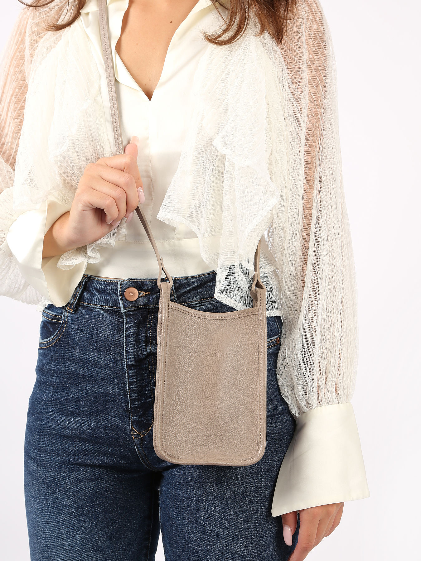 Het telefoonetui Le Foulonné van Longchamp is zowel functioneel als elegant. Met zijn 110 cm lange schouderriem volgt hij uw bewegingen met natuurlijke soepelheid. Het slanke en verfijnde design doet denken aan een ritsetui, terwijl het ruime interieur twee vakken biedt voor uw kredietkaarten. LE FOULONNÉ, de iconische en onmisbare lijn van Maison Longchamp, onderscheidt zich door zijn karakteristieke leernerf. De collectie biedt sobere en tijdloze modellen die met elegantie de tand des tijds doorstaan. Al meer dan 40 jaar weet deze lijn zich telkens opnieuw uit te vinden, terwijl ze haar essentie en authenticiteit behoudt.
